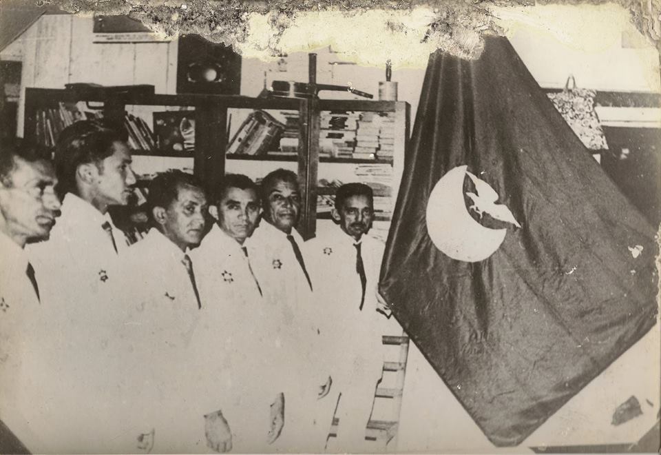 Bandeira com fundo verde-bandeira; águia e lua brancas